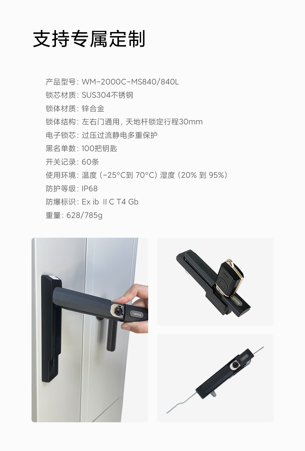 鎖體結(jié)構(gòu):左右門通用,天地桿鎖定行程30mm