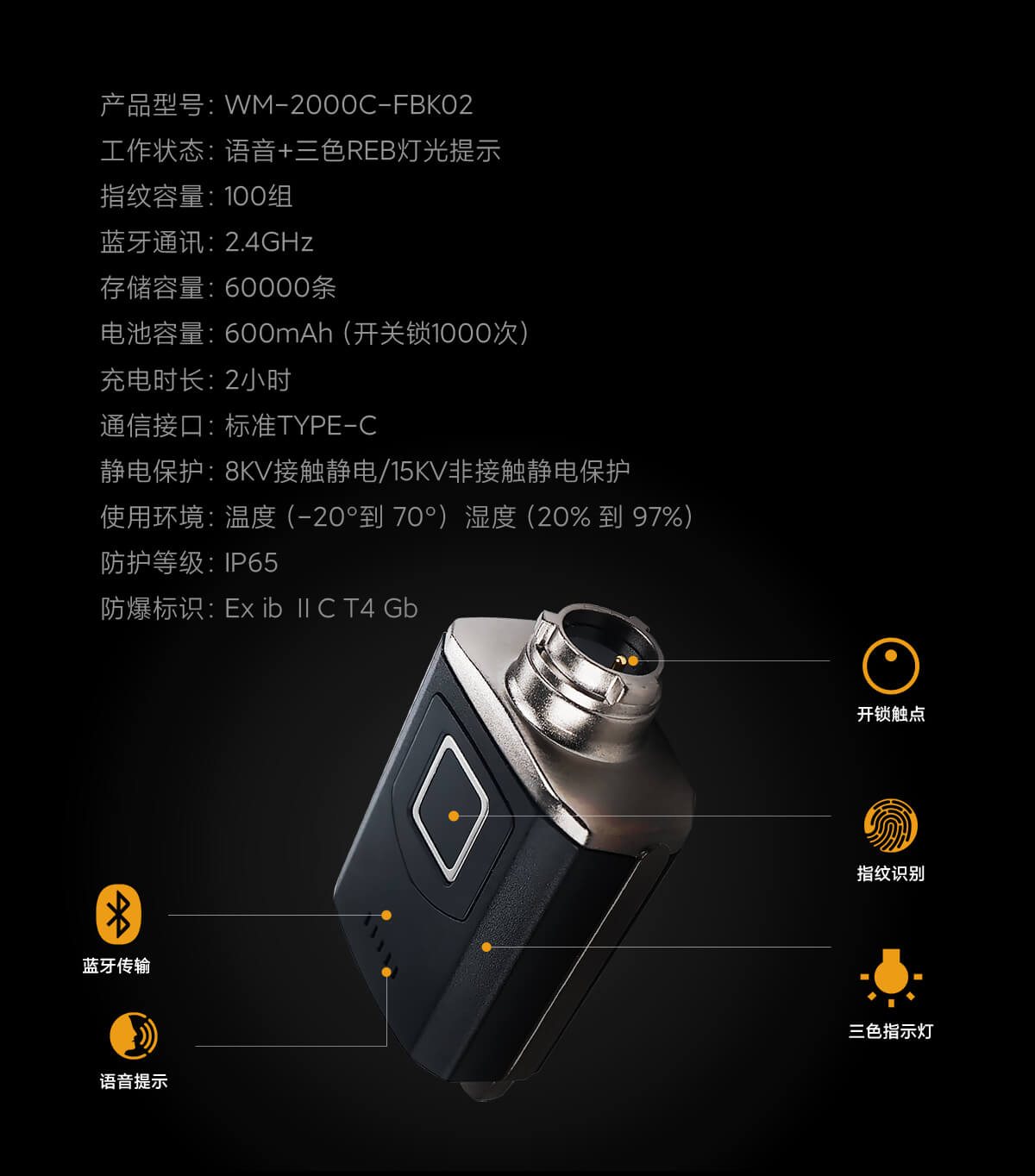 工作狀態(tài):語音+三色REB燈光提示