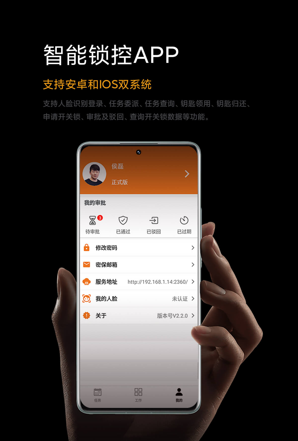 支持人臉識別登錄、任務(wù)委派、任務(wù)查詢、鑰匙領(lǐng)用、鑰匙歸還、