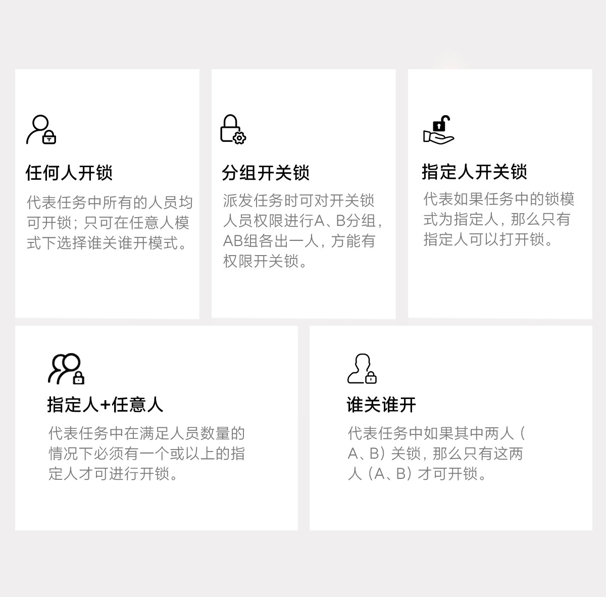 任意分配開鎖任務(wù),可單人/多人組合驗(yàn)證開關(guān)鎖。