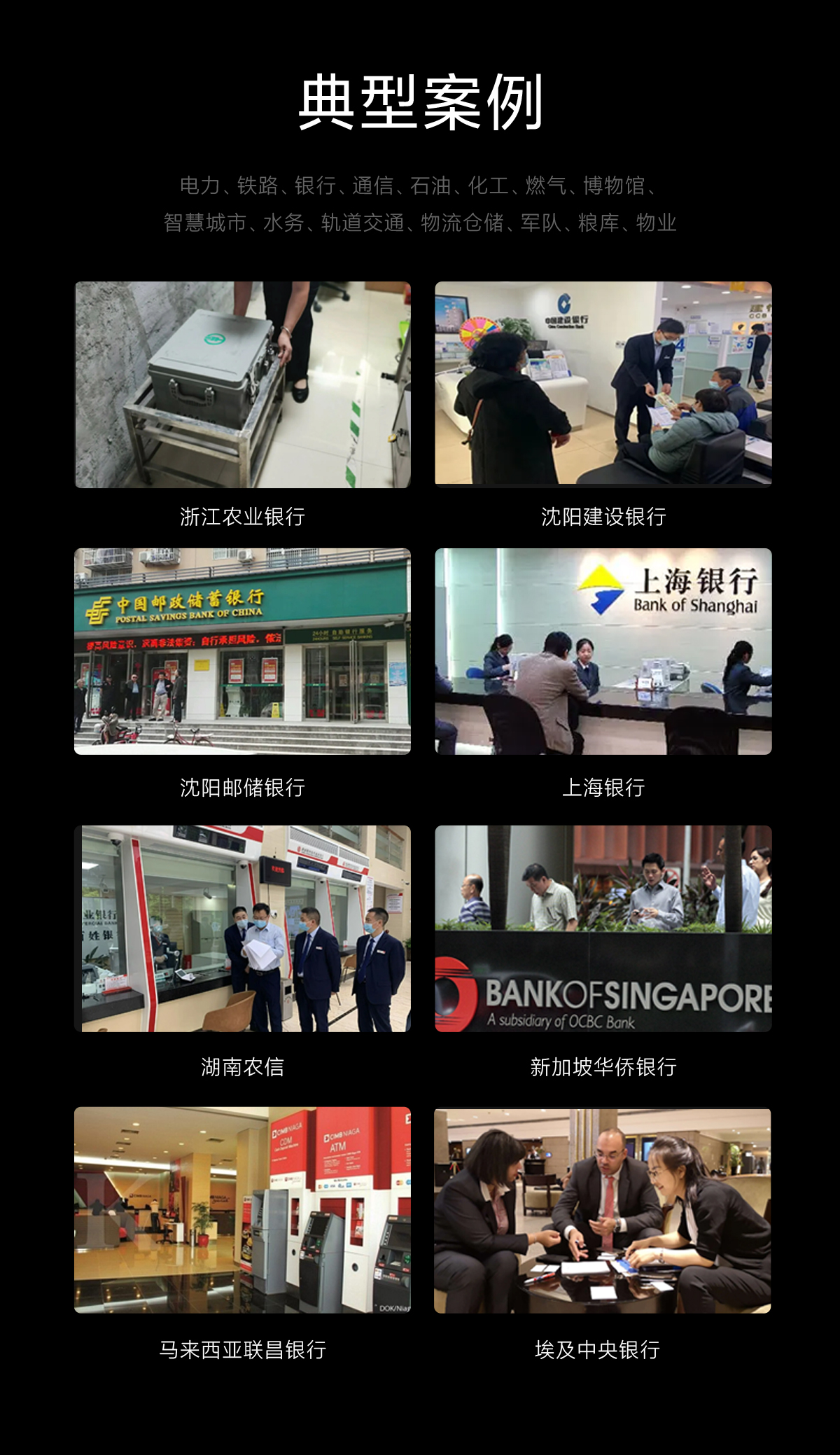 智慧城市、水務(wù)、軌道交通、物流倉(cāng)儲(chǔ)、軍隊(duì)、糧庫(kù)、物業(yè)