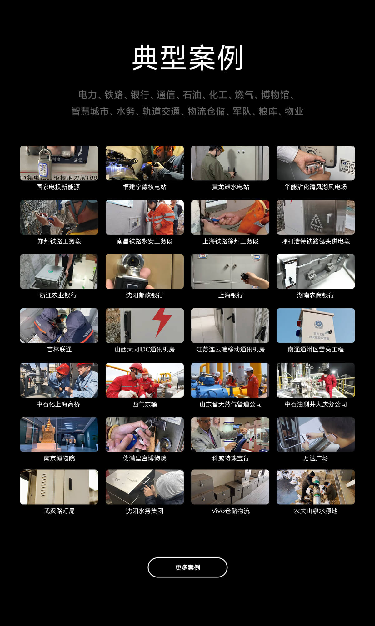 電力、鐵路、銀行、通信、石油、化工、燃氣、博物館、 智慧城市、水務、軌道交通、物流倉儲、軍隊、糧庫、物業(yè)