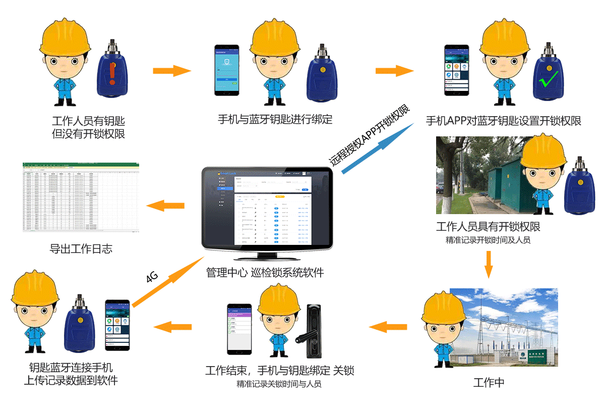 此外,無源電子鎖管理系統(tǒng)配合藍牙電子鑰匙對作業(yè)人員身份、作業(yè)時間、鑰匙權限等信息也可同步管理,通過手機APP配合云平臺對上述內容就可以實時監(jiān)測,以防隱患。當鑰匙插入鎖中時,鑰匙即對鎖芯供電,同時鎖芯內部微型處理器和鑰匙內部芯片信息相互認證,通過后可執(zhí)行所分配任務(編碼、開關鎖、巡檢、抄鎖等)。系統(tǒng)軟件通過手機APP或藍牙適配器讀取鑰匙操作日志,并保存到系統(tǒng)數據庫,以方便管理員查詢。