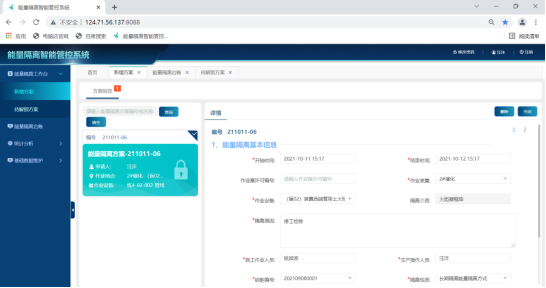 PC端能量隔離智能管控平臺通過對裝置設(shè)備點位基礎(chǔ)信息的采集維護(hù),可在線制定能量隔離工作方案,明確隔離鎖定點位及方式、作業(yè)人員、智能鎖定設(shè)備及權(quán)限,并對隔離鎖定過程操作進(jìn)行實時監(jiān)控和電子臺賬統(tǒng)計。