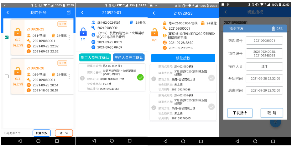 能量隔離智能管控系統(tǒng)可實現(xiàn)上鎖、解鎖過程的權(quán)限控制,通過授權(quán)確認(rèn)可以有效保證能量隔離與鎖定管理要求的剛性執(zhí)行。