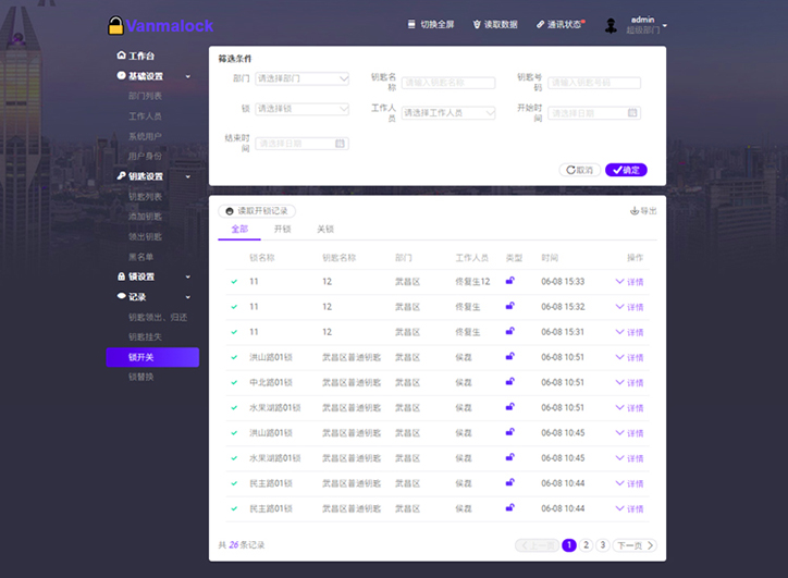 安全管理三級密碼權(quán)限+動態(tài)密鑰,防復制防技術(shù)開鎖,層層管控。