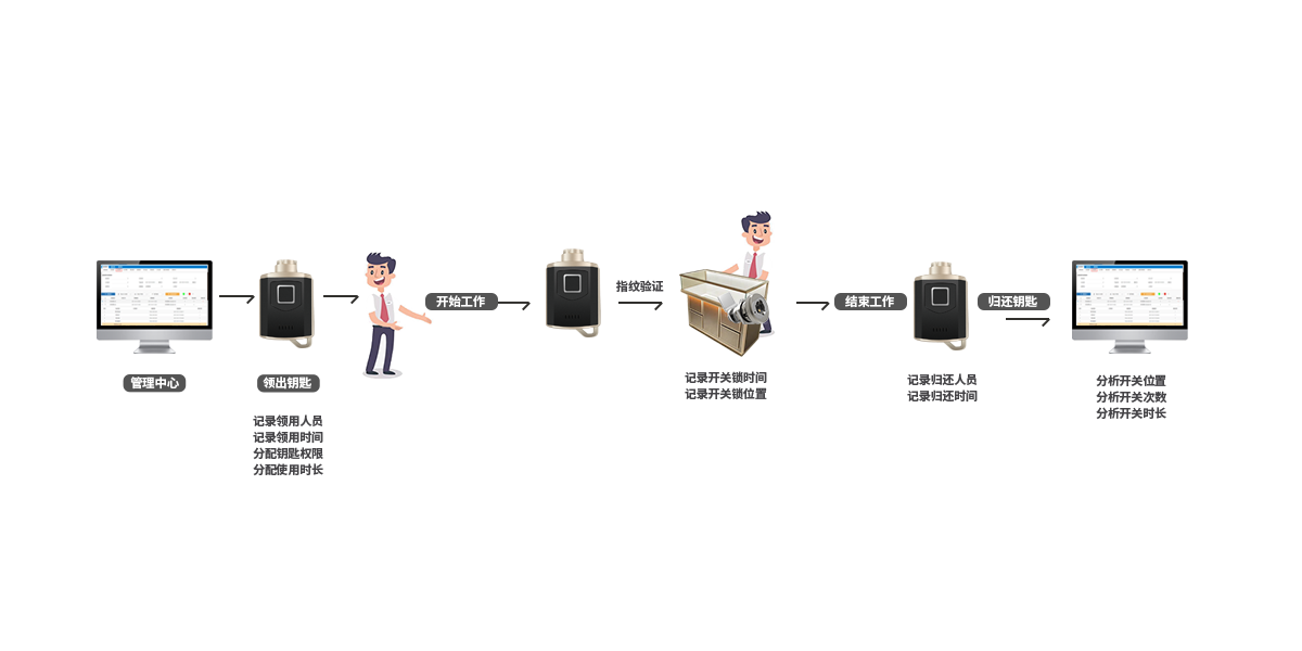 作業(yè)過(guò)程管理電子鑰匙記錄開(kāi)關(guān)鎖時(shí)間,作業(yè)過(guò)程有據(jù)可依。