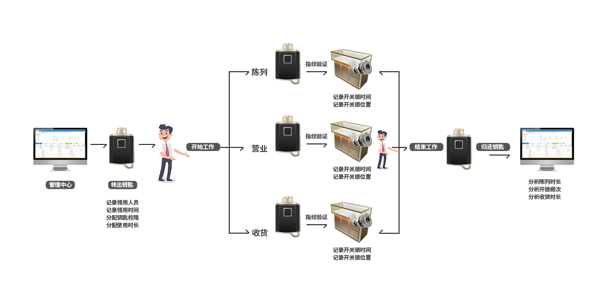 基于現(xiàn)存的問(wèn)題,也給安全管理帶來(lái)了新的思考,如何采用更先進(jìn)更有效的手段真正實(shí)現(xiàn)防微杜漸的效果,不給犯罪分子任何可乘之機(jī)。同時(shí)實(shí)現(xiàn)鑰匙的領(lǐng)用、交接、歸還交接都能有效管理,旺場(chǎng)時(shí)可以及時(shí)開(kāi)柜補(bǔ)位。